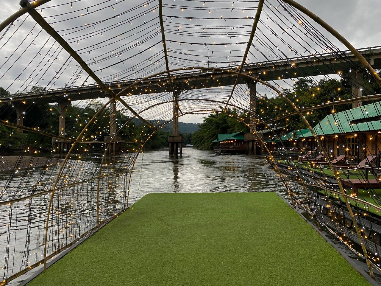 - Melihat pemandangan sungai dan bandar Kanchanaburi melalui Skywalk